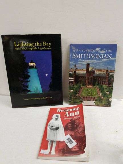 Set of 3 books includes 'Lighting the Bay: Tales of Chesapeake Lighthouses' by Pat Vojtech, 'A Picture Tour of the Smithsonian,' and 'Becoming Ann: A Baltimore Childhood' by Ann Hennessy.