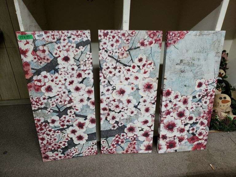 LOT 3133 - 3 Piece Matching Cherry Blossom Picture Set