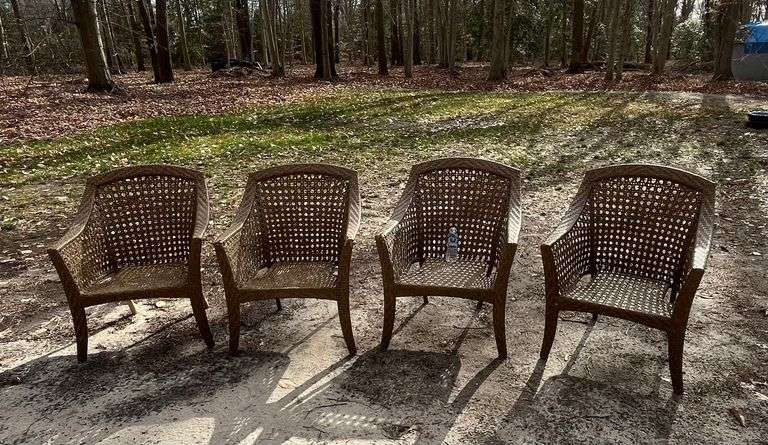 LOT 3005 - (4) Wicker Outdoor/Indoor Chairs. Large, Sturdy. Plenty of space for cushions