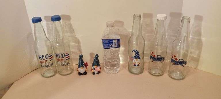 LOT 370 - 7 NEW Miscellaneous Patriotic Items including 5 Glass Soda Bottles