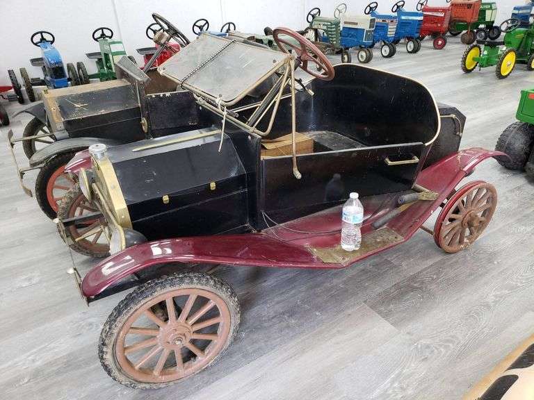 Miniature motorized vehicle featuring a 2 HP Briggs & Stratton engine and detailed styling. Includes functioning steering and a brass-tone grille. Labeled ‘Not for Highway Use’ with a speed limit of 15 MPH.