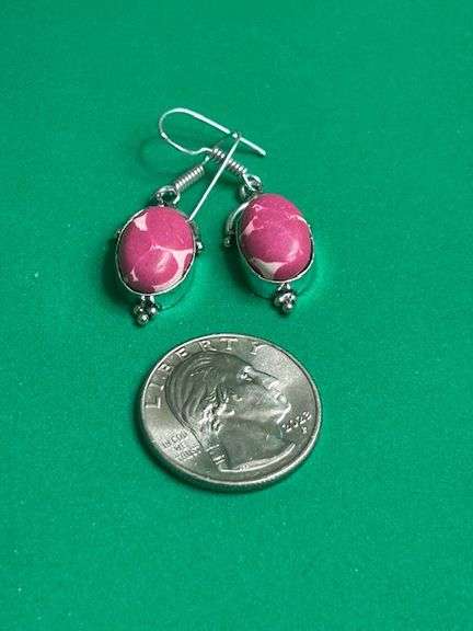 LOT 2179 - Sterling Silver Pink Turquoise Earrings