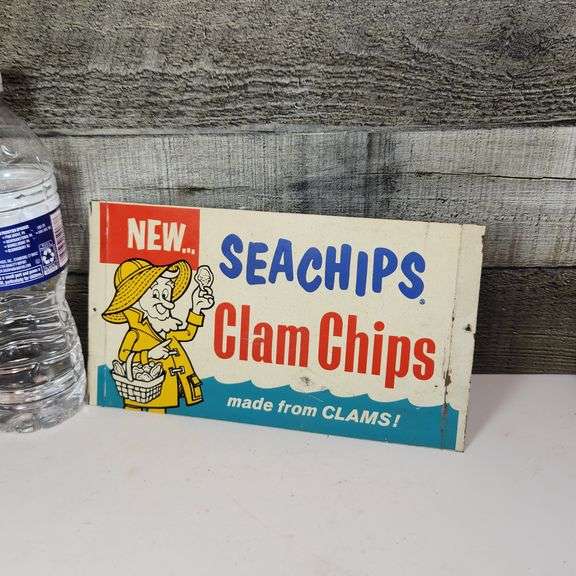LOT 122 - "Seachips Clam Chips" Vintage Enameled Metal Advertising In-Store Sign