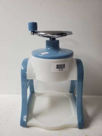 LOT 131 - Pampered Chef Blue and White Hand-Crank Pampered Chef Ice Shaver / Snow Cone Maker