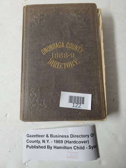 Gazetteer & Business Directory of Onondaga County, New York, covering 1868-1869. Published by Hamilton Child, Syracuse. Hardcover format with original advertisements and additional pages included.