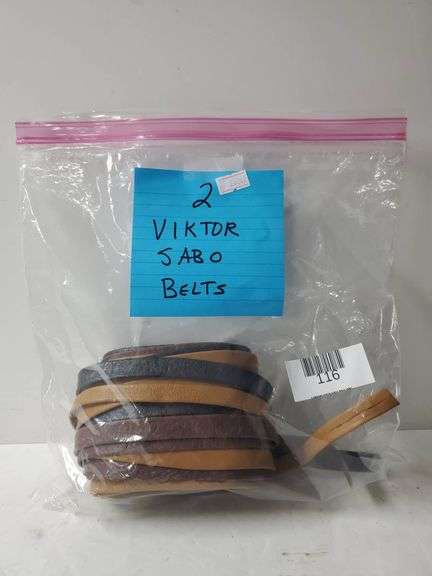 2 Viktor Sabo belts in assorted colors. Belts are packaged together in a clear resealable bag. Exact sizes and additional details not specified.