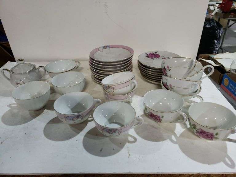 LOT 1090 - Rink Trimmed Cup & Saucers, Rose Cup & Saucer. Sugar Dish White Cups