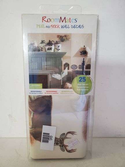 RoomMates peel and stick wall decals featuring 25 wilderness-themed designs, including wildlife patterns and outdoor motifs. Designed for easy application and removal without damage to surfaces.