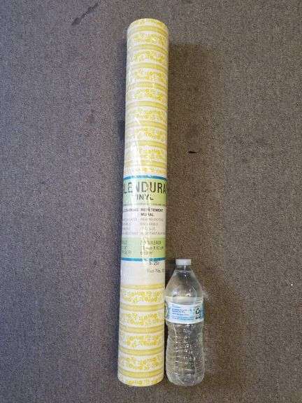 Len-Dura vinyl covering featuring a yellow floral design, approximately 6.625 yards in length and 24 inches wide. Suitable for various covering applications as detailed on the label.