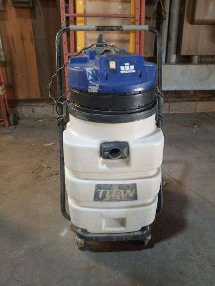 Windsor Industries T720TP Koala 415 commercial vacuum cleaner featuring a durable design, large water tank capacity, and wheels for ease of movement. Powered at 120V, 60Hz, and 8.5A, it is UL listed and made for heavy-duty cleaning applications.