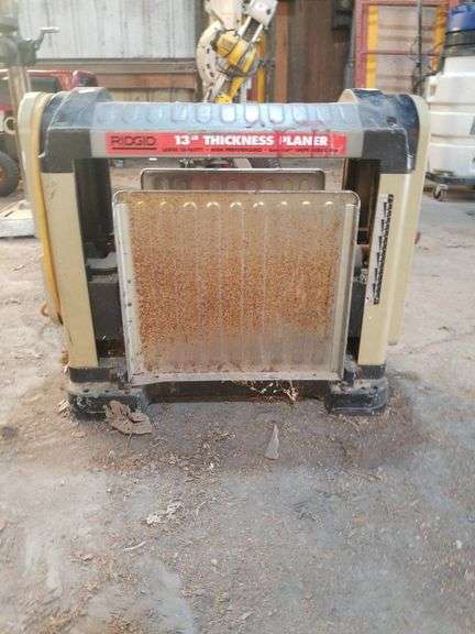 Ridgid 13-inch thickness planer featuring a large capacity and Sure-Cut snipe reduction system. Includes visible adjustable settings and durable construction, designed for performance in woodworking.