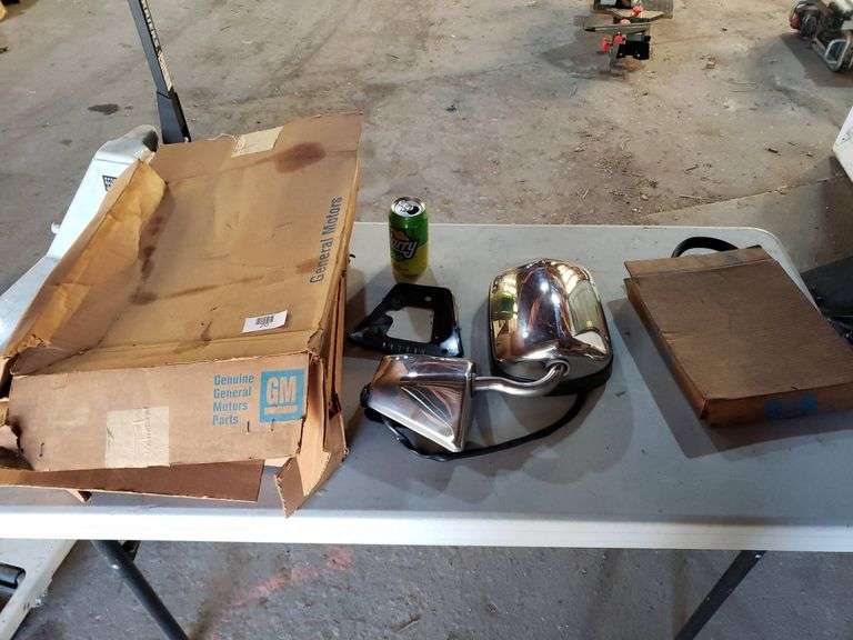 2 side mirrors with mounting hardware, marked as Genuine GM Parts. Includes part number 11-26300-00. Comes in original GM packaging. See photos for details.