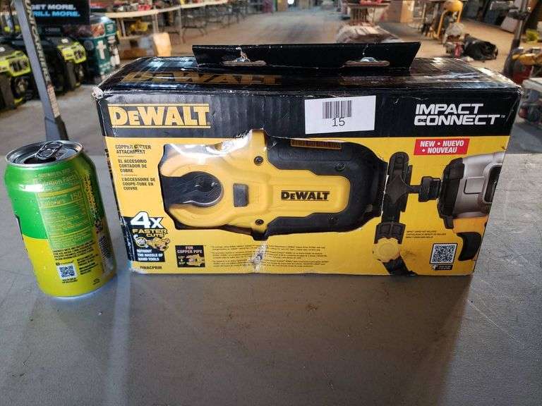 DeWalt Impact Connect Copper Cutter Attachment designed for cutting copper pipes with speed and precision. Includes 4x faster cutting technology. Packaging indicates it is new.