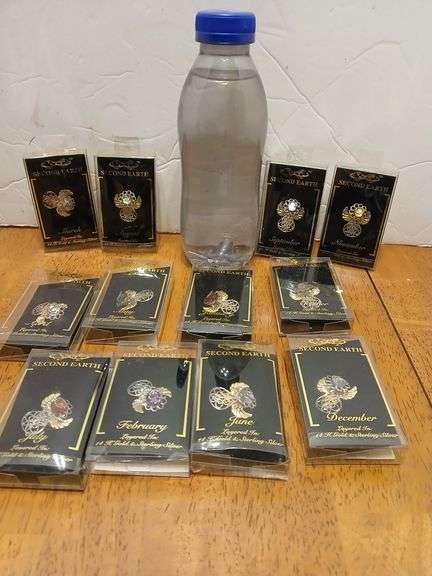 LOT 4 - NEW Second Earth Pins 14 k Gold & Sterling Siler Variety of Months 12