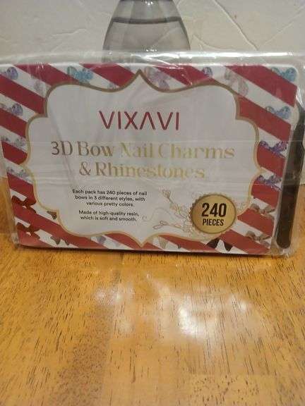 LOT 16 - NEW Vixavi 3D Bow Nail Charms & Rhinestones 240 pieces