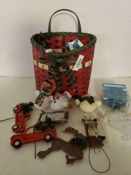 LOT 1143 - Christmas Basket With Assorted Christmas Decorations