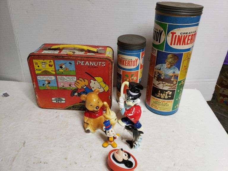 LOT 1386 - Tinkertoy Toys, Walt Disney Figures, Vintage Lunch Box