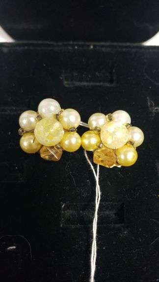LOT 1399 - Vintage Pearl Cluster Clip-on Earrings - Marked Japan