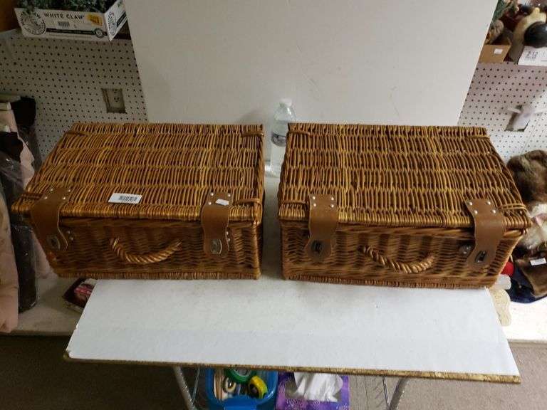 LOT 1013 - Woven Wicker Picnic Baskets - One Disconnected Top And With Cards