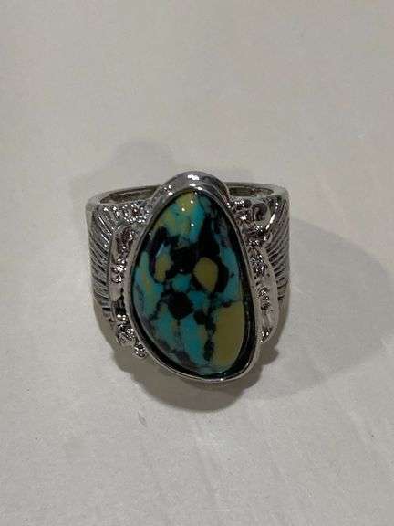 LOT 994 - Tibetan Silver Turquoise Ring Marked .925