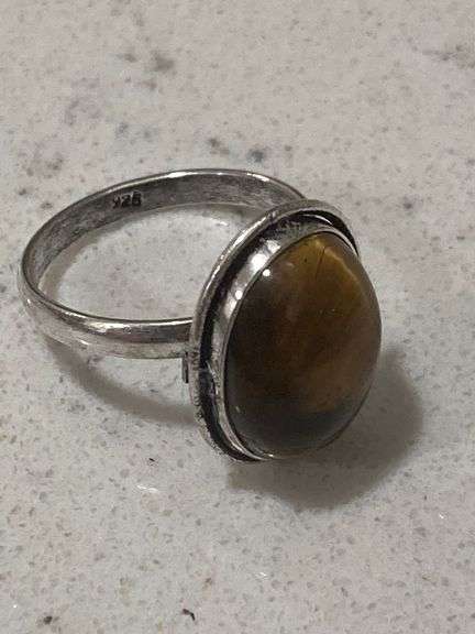 LOT 1200 - Tiger Eye Gemstone Ring Marked .925