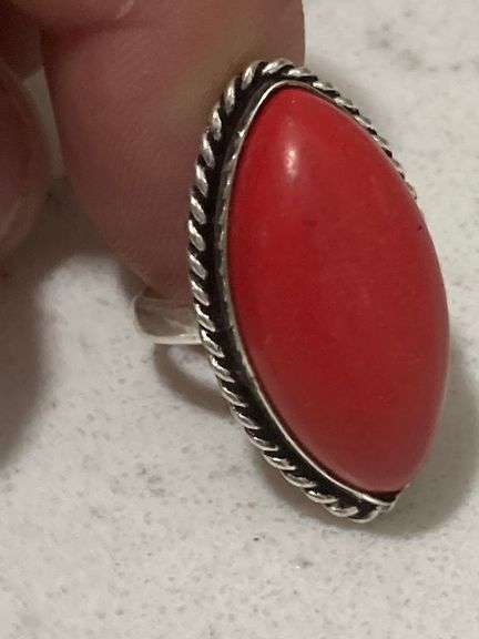 LOT 1197 - Southwestern Red Coral Gemstone Ring Marked .925