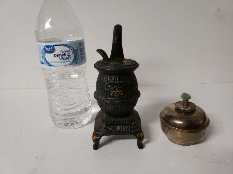 LOT 336 - Cast Iron Pot Belly Stove And Oil Wick