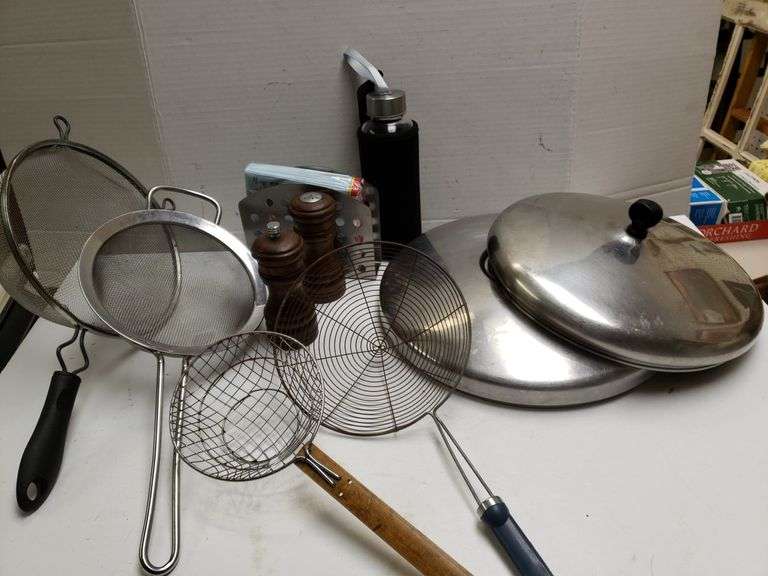 LOT 411 - Assorted Strainers, Pot Tops & More