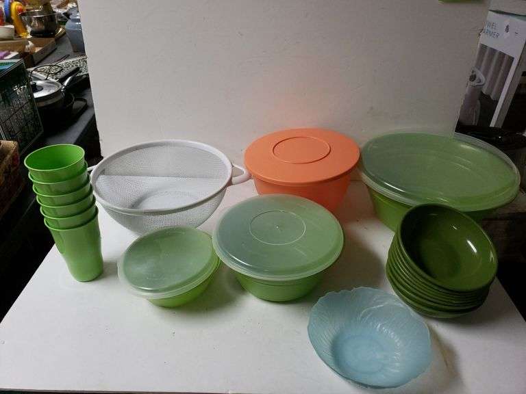 LOT 88 - Strainer and plasticware to Include covered bowls cups and small bowls