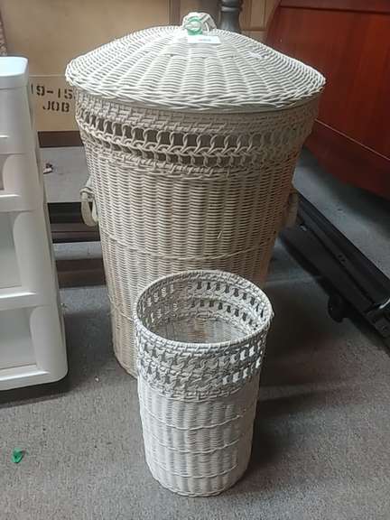 LOT 3064 - Wicker Basket & Trash Can