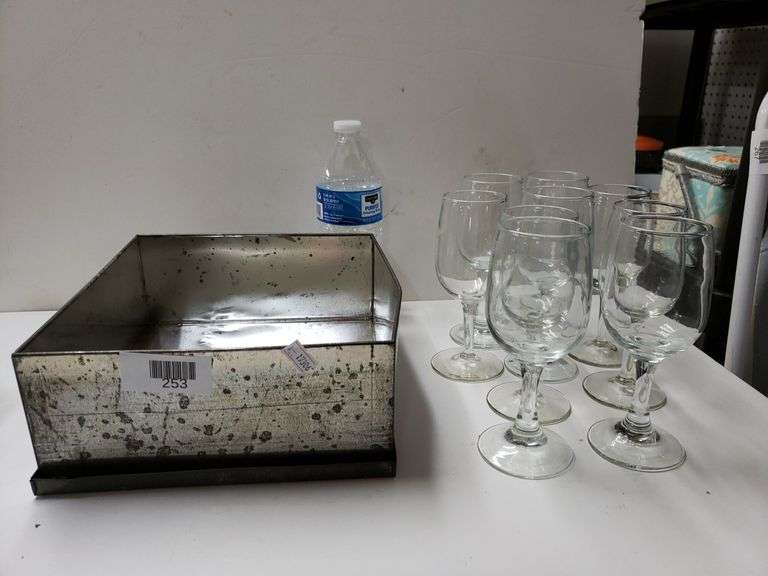 LOT 253 - Metal Tin And Stemware