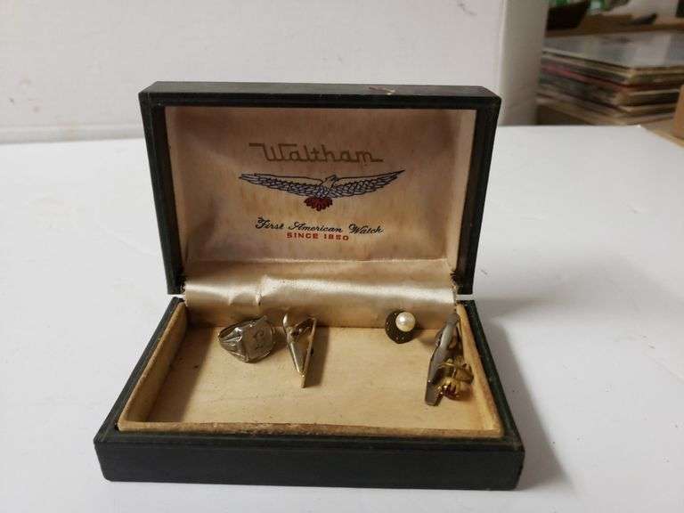 LOT 393 - Waltham Watch Container With Assorted Items