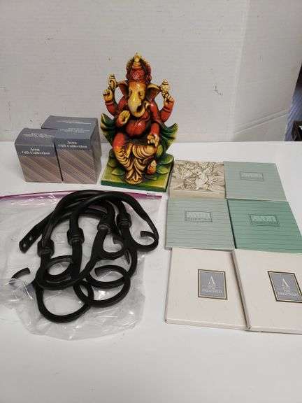 LOT 180 - Black Curtain Pull Backs, GameShark Statue & Avon Collectibles