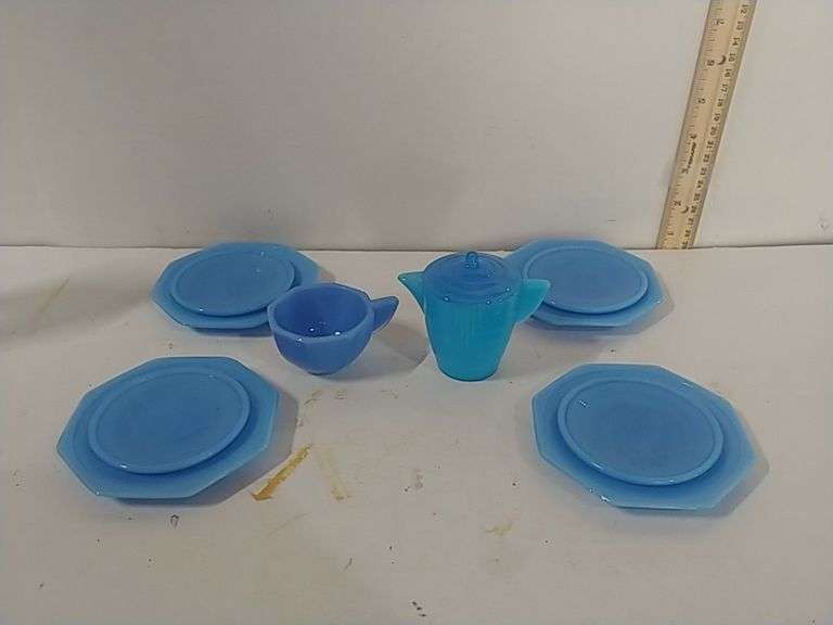 LOT 473 - Vintage Akro Agate Glass Child's 11 Piece Set