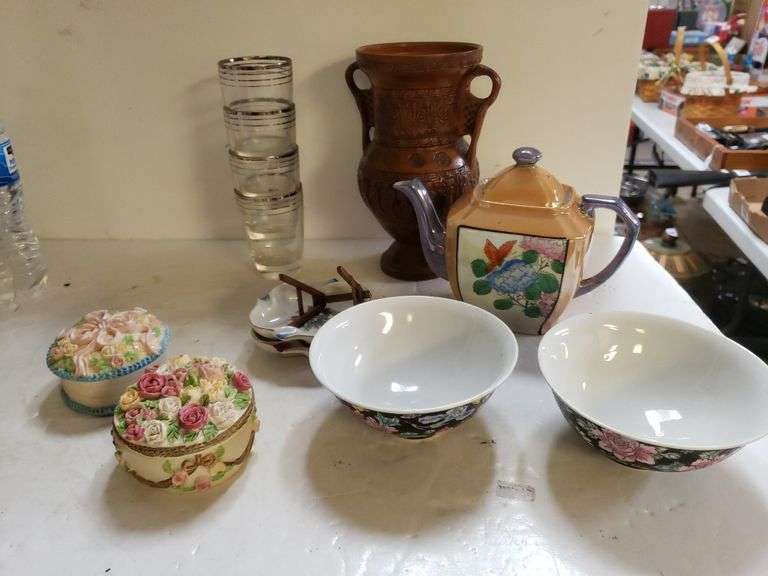 LOT 519 - Trinket Containers, Oriental Inspired Bowl, Tea Pot & More