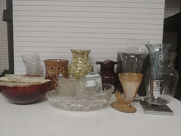 LOT 132 - Glassware-Vases, Bowls, Dishes