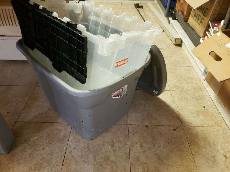 LOT 487 - 2 Storage Totes 1 Has Missing Half Lid