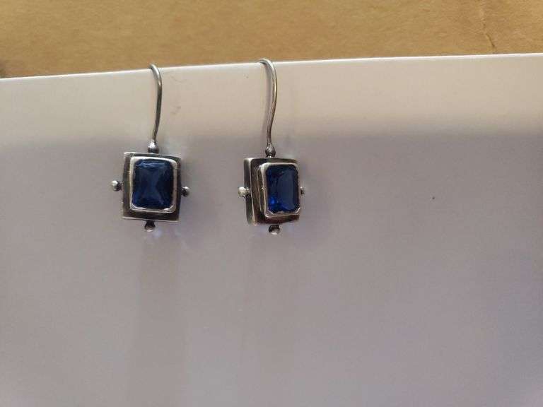 LOT 784 - Ladies Square Earrings W/ Blue Stones- Marked 925