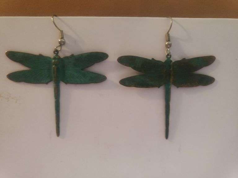 LOT 765 - Ladies Dangle Metal Dragonfly Earrings